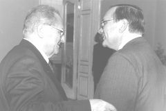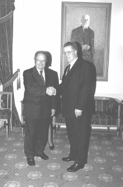 Attēlā pa kreisi — delegācijas vadītājs Gustavs Vabro un Valsts prezidents Guntis Ulmanis