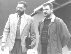 Nacionālas bibliotēkas direktors Andris Vilks un projekta vadītājs Aldis Ābele