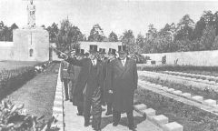 Trīsdesmito gadu vidū Kārlis Ulmanis īpaši rūpējas par Uzvaras laukuma izbūvi. Attēlā redzam Uzvaras laukuma izbūves komitejas prezidija locekļus Brāļu kapos, ar to atzīmējot Uzvaras laukuma ziedojumu vākšanas pirmā gada noslēgumu. Uzņēmumā pirmais no labās — Valsts prezidents Dr. Kārlis Ulmanis. Viņam blakus kara ministrs ģenerālis Jānis Balodis