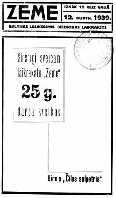 Sakarā ar zemes malkas (kūdras) iegūšanu man ļoti vajadzīgi labi padomi un palīdzība. Tāpēc lūdzu arī Jūs parūpēties, lai varbūt Baltijas lauksaimniecības biedrības biedri ar pieredzējumiem kūdras griešanā (savām vajadzībām vai pārdošanai) aprakstītu savus darba paņēmienus un citus vērā ņemamus punktus laikrakstā “Brīvā Zeme”. Arī “Zemē” marta un apriļa numuros nebūtu vēl par vēlu. Uz maija sākumu mēs gribam visu plānu gatavu dabūt.