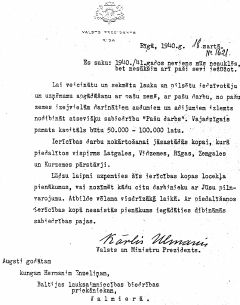 Ar Kārļa Ulmaņa 1940.gada 18.marta vēstuli domubiedram Hermanim