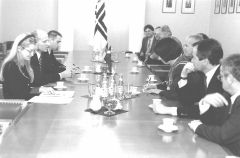 Vakar, 23.oktobrī, pie Ministru prezidenta Guntara Krasta viesojās Vācijas Bundestāga Juridiskās komisijas delegācija šīs komisijas priekšsēdētāja Horsta Eilmana vadībā (augšējā attēlā). Sarunas sākumā Ministru prezidents izteica pateicību par Vācijas starptautiskās tiesiskās sadarbības fonda ieguldījumu Latvijas un Vācijas tiesiskās sadarbības veidošanā. Sarunu gaitā pārrunāts Eiropas Savienības paplašināšanās process. Viesi interesējās par reformu kvalitāti un virzību Latvijā. Bundestāga delegācija informēja Ministru prezidentu par iespaidiem Latvijā. Puses apmainījās viedokļiem par abu valstu reģionālo kooperāciju. Tika pārspriesta Baltijas valstu savstarpējās integrācijas problemātika. Viesi interesējās par Latvijas iedzīvotāju attieksmi pret ES paplašināšanos un Latvijas tirgus atvērtības modeli. Ministru prezidents interesējās par “Nolīguma par sadarbību cīņā pret organizēto noziedzību, terorismu un citiem smagiem noziegumiem” un “Līguma par nodokļu dubultās uzlikšanas novēršanu attiecībā uz ienākuma un kapitāla nodokļiem” ratifikācijas gaitu VFR. Valdības preses departaments |