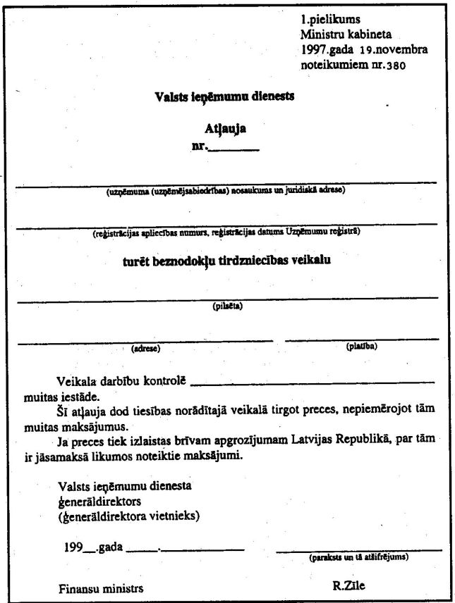 48.2. Ministru kabineta 1996.gada 5.marta noteikumus nr.51 “Grozījums Ministru kabineta 1995.gada 27.jūnija noteikumos nr.178 “Noteikumi par beznodokļu tirdzniecības veikaliem”” (Latvijas Vēstnesis, 1996, 43./44.nr.).