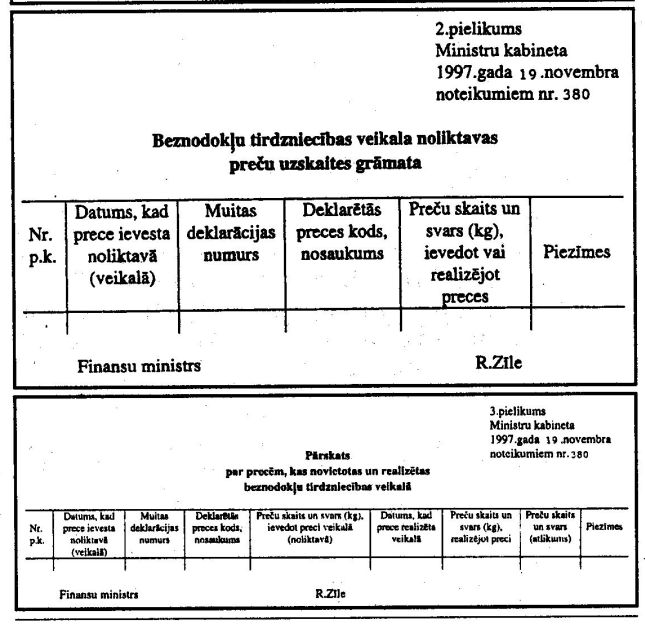 37. Beznodokļu tirdzniecības veikala noliktavā novietotās preces beznodokļu tirdzniecības veikala turētājs uzskaita preču uzskaites grāmatā (2.pielikums).