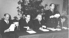 Kopā ar kolēģiem tramvajniekiem kādā svinīgā sanāksmē