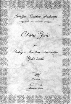 Latvijas Zinātņu akadēmijas locekļa diploms no akadēmijas