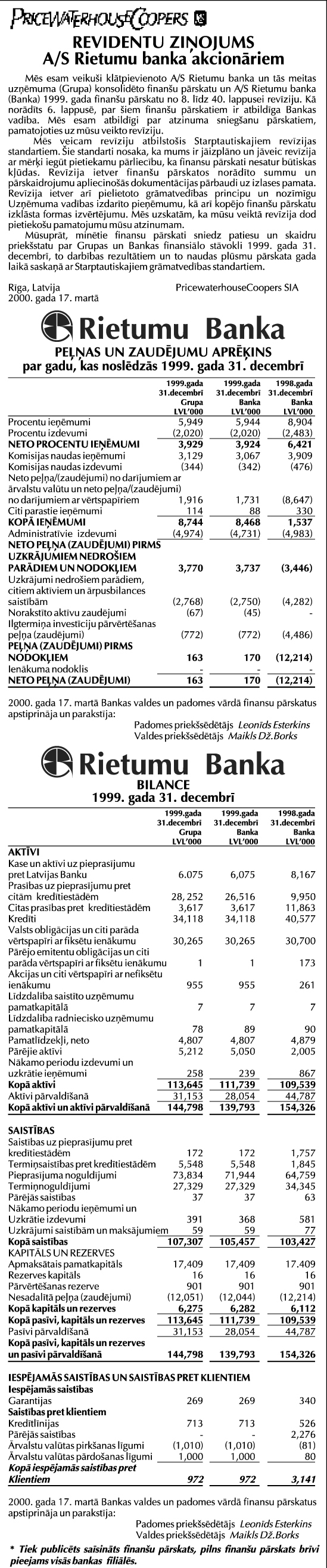 | Skaidras naudas atlikums uz 01.01.2000. | lati | 1 715 062 |
