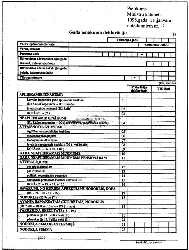 2. Noteikt, ka ārvalstu nodokļu maksātāji (nerezidenti), kuri Latvijas Republikā ir guvuši ienākumus no algota darba tāda darba devēja labā, kas nav Latvijas rezidents vai kam nav pastāvīgās pārstāvniecības Latvijas Republikā, un no kuru ienākumiem to izmaksas vietā nav ieturēts i e dzīvotāju ienākuma nodoklis, var iesniegt gada ienākumu deklarāciju vispārējā kārtībā.