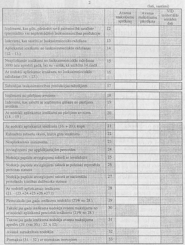 Iedzīvotāju ienākuma nodokļa avansa maksājumu noteikšanas kārtība