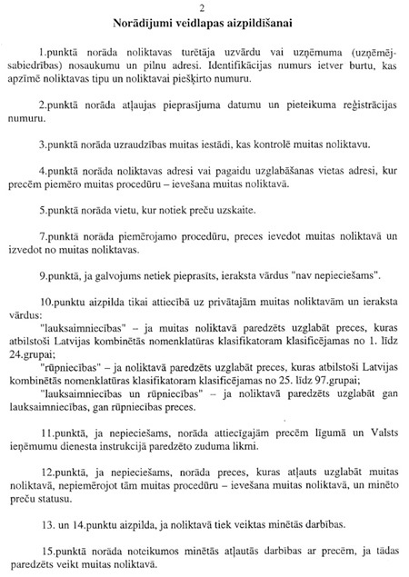 36.6. muitas deklarācijas numuru un datumu, pavaddokumentus un to numurus.