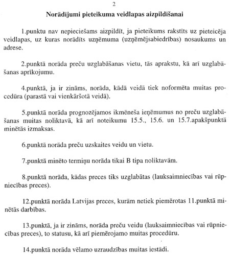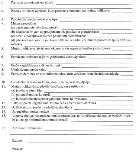 Pieteikums muitas noliktavas turēšanas atļaujas vai E tipa muitas noliktavas izmantošanas atļaujas saņemšanai