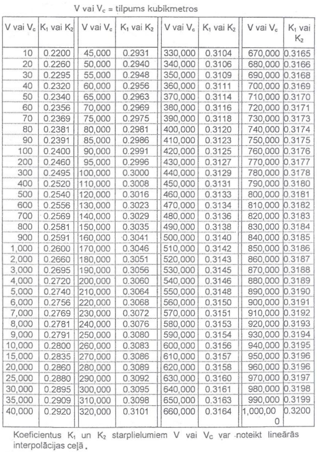 Koeficienti K1 un K2, kas attiecas uz 3. un 4.1. noteikumiem