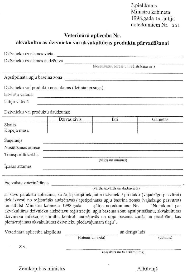 18.1. kat rai akvakultūras dzīvnieku un akvakultūras produktu kravai jābūt Valsts veterinārā dienesta izsniegtam veterinārajam sertifikātam;