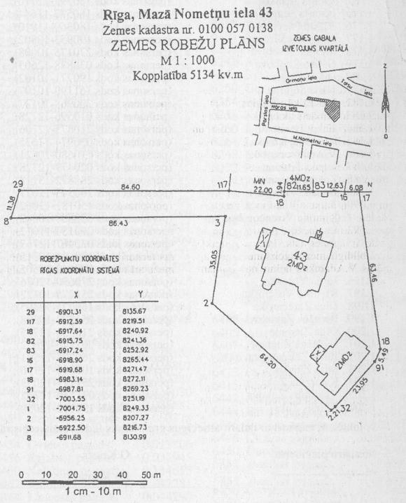 | 4. | Divas ēkas un pagalma izbūves (liters Nr.1 un Nr.2) | 0100 057 0138 | 5134 | Rīgā, Mazā Nometņu ielā 43 |