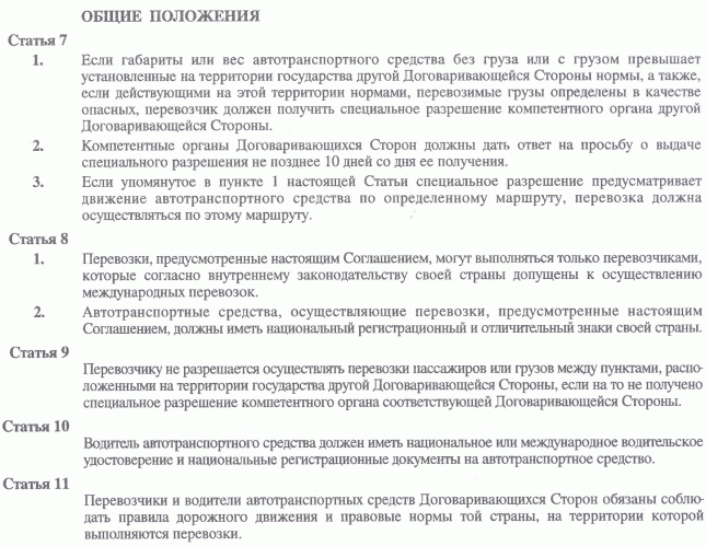 Līgumslēdzēju Pušu valstu pārvadātājiem un autotransporta līdzekļu vadītājiem jāievēro tās valsts tiesību normas un ceļu satiksmes noteikumi, kuras teritorijā tiek veikti pārvadājumi.