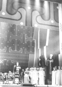 Efektīga ir krāsu partitūra. Pirmajā cēlienā valda zaļi dzeltena toņkārta, otrajā sarkanā — gan ziedu vītnēs un tērpos, gan skatuvi pārplūdinošās gaismās.
