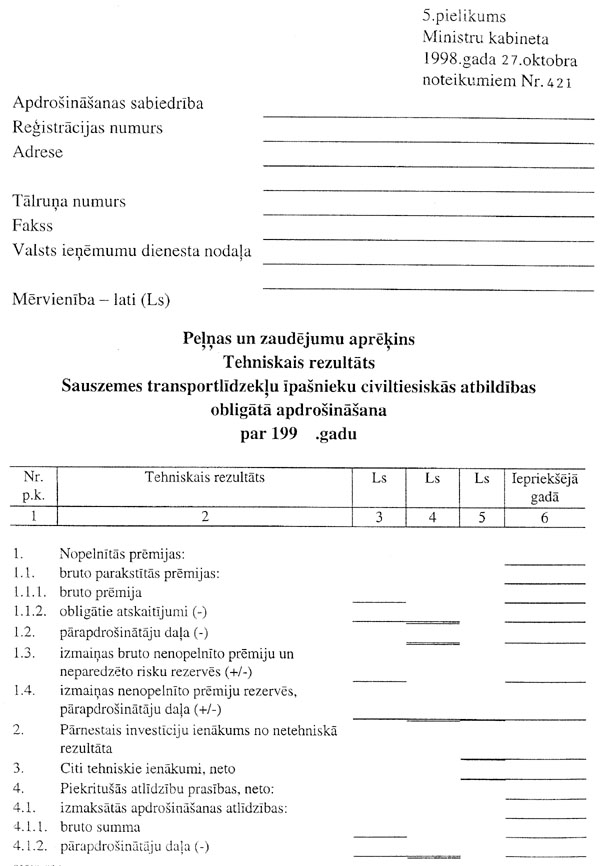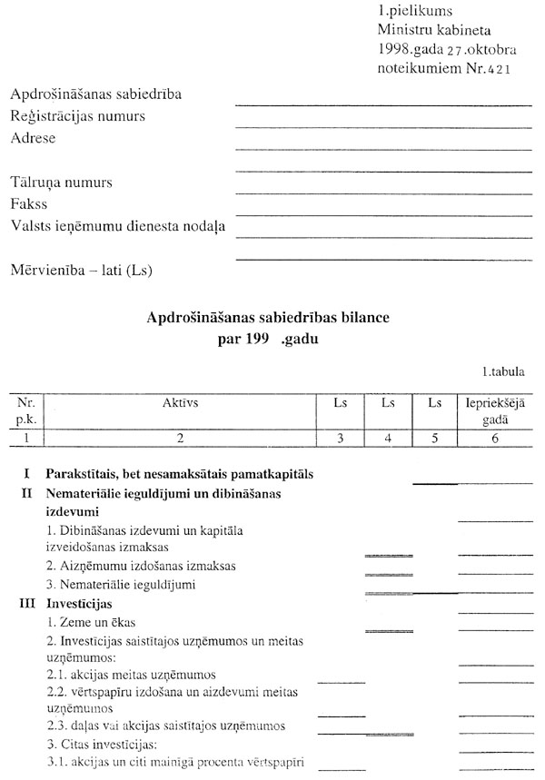 121.1 Ministru kabineta 1996.gada 9.decembra noteikumus Nr.448 "Apdrošināšanas sabiedrības gada pārskata sastādīšanas noteikumi" (Latvijas Vēstnesis, 1996, 217./218.nr.; 1997, 314.nr.);