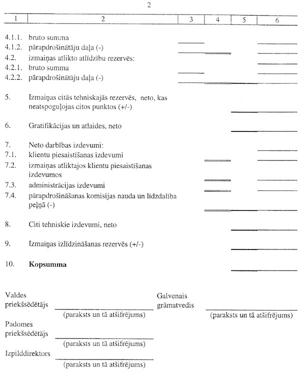 93.2. šādus dzīvības apdrošināšanas sabiedrības peļņas un zaudējumu aprēķina tehniskā rezultāta rādītājus, kas sadalīti starp tiešo apdrošināšanu un pieņemto pārapdrošināšanu (ja pieņemtā pārapdrošināšana veido 10 % vai vairāk no parakstītajām bruto prēmijām):