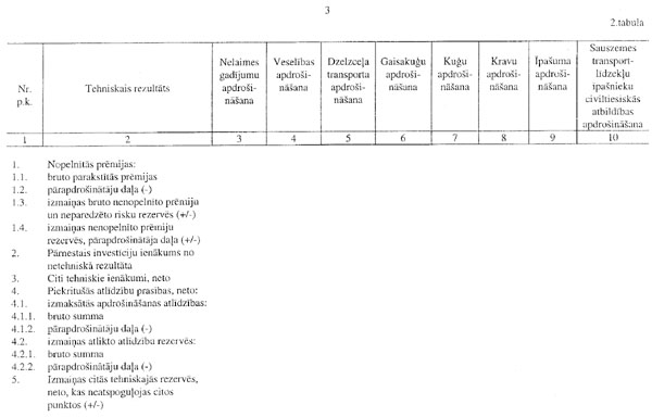 111. Tehniskais rezultāts sauszemes transportlīdzekļu īpašnieku civiltiesiskās atbildības obligātajā apdrošināšanā (1.1.1.). Bruto prēmiju uzrāda saskaņā ar Ministru kabineta 1997.gada 27.maija noteikumiem Nr.199 "Noteikumi par sauszemes transportlīdzekļu īpašnieku civiltiesiskās atbildības obligātās apdrošināšanas prēmijām, to palielināšanas un samazināšanas kārtību un apdrošinātāja atbildības limitiem".