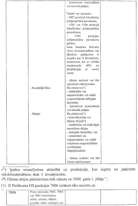 (11) II Pielikuma HS pozīcijas 7006 ieraksts tiks mainīts ar: