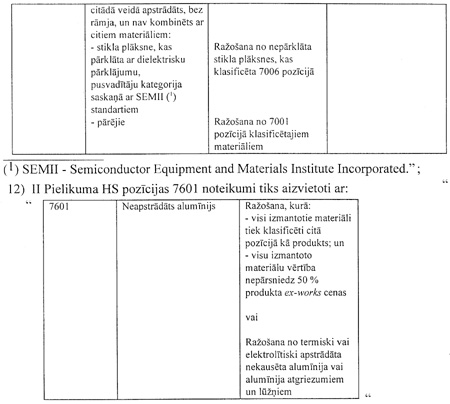 Ievērojot to, ka jāprecizē apstrādes un pārstrādes noteikumu saraksts, kas jāizpilda neizcelsmes materiāliem, lai tie iegūtu izcelsmes statusu, ņemot vērā izmaiņas pārstrādes metodēs un atsevišķu izejmateriālu trūkumu,