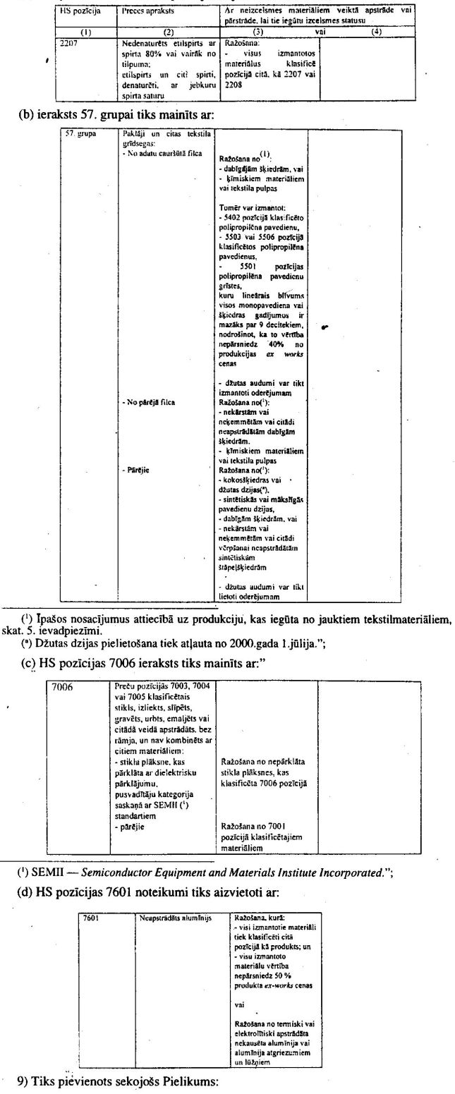 Ievērojot to, ka jāprecizē apstrādes un pārstrādes noteikumu saraksts, kas jāizpilda neizcelsmes materiāliem, lai tie iegūtu izcelsmes statusu, ņemot vērā izmaiņas pārstrādes metodēs un atsevišķu izejmateriālu trūkumu,