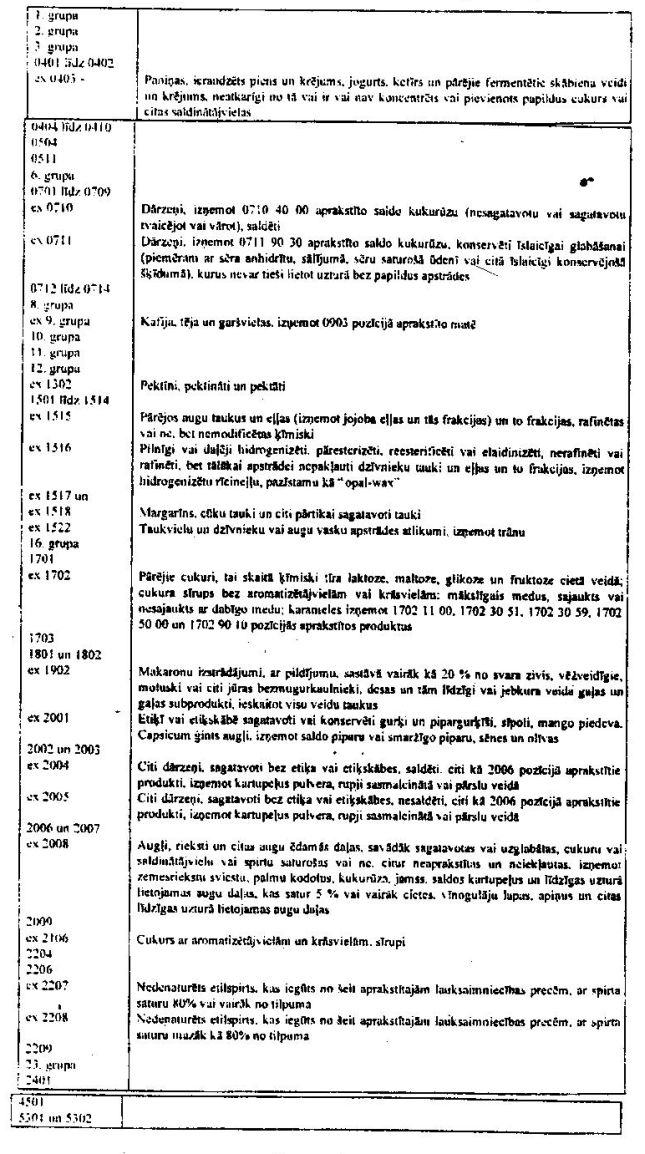 4. pantu noteikumi uzskaitījums HS grupu un pozīciju secībā