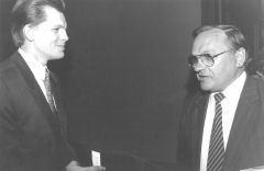 Latvijas Bankas prezidentu sveic Saeimas priekšsēdētājs Alfreds Čepānis un finansu ministrs Roberts Zīle Foto: Māris Kaparkalējs, “LV”