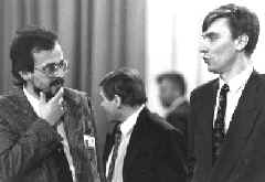 Ministru prezidents Andris Šķēle un deputāts Jānis Kalviņš,