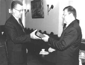 Piektdien, 29.septembrī, Rīgas pilī pie Valsts prezidenta ieradās Latvijas ārkārtējais un pilnvarotais vēstnieks Krievijā Jānis Peters. Viņš uzsvēra, ka šī mūsu tautas vēsturē ir īpaša — Operas atdzīvināšanas — diena un atgādināja, ka šis nams tapis no jauna, pateicoties tautas atmodai un visplašākajam atbalstam. 1990.gadā Jāņa Petera redakcijā un ar viņa pūlēm Parīzē klajā nāca latviešu tautas pamatgrāmatas, kā viņš to atzīmēja, — "Latvju rakstu" faksimilizdevums. Šos trīs sējumus, kā arī Parīzē tajā pašā laikā izdoto Eduarta Virzas poēmu "Hercogs Jēkabs" Jānis Peters šodien dāvināja Valsts prezidenta bibliotēkai. Pateicoties par šo dāvanu, prezidents Ulmanis atkārtoja, ka šīs dienas patiešām ir ļoti nozīmīgas visai Latvijai gan ar atjaunoto Operu, gan ar 6.Saeimas vēlēšanām. Piekrītot teiktajam, Jānis Peters no savas puses atzīmēja, ka šajā reizē viņš vēro daudz augstāku politisko kultūru priekšvēlēšanu kampaņā kā citkārt. Un arī šis fakts vēl vairāk stiprina mūs un sniedz drošāku pārliecību par mūsu iesākto ceļu. Valsts prezidents sarunā ar Jāni Peteru skāra plašu starptautisko un arī iekšpolitisko jautājumu spektru.