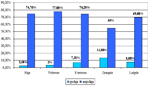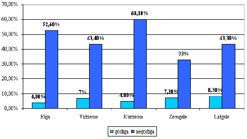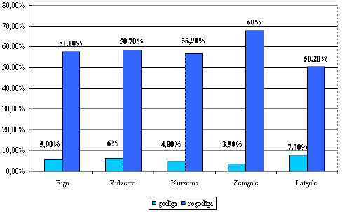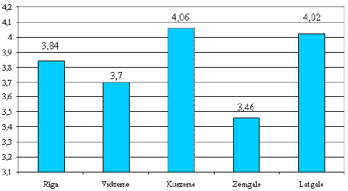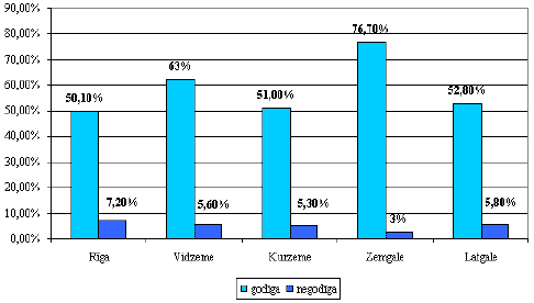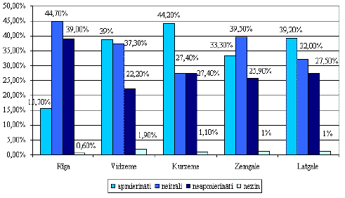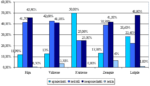 No šī zīmējuma varam secināt, ka visumā rādītāji ir visai līdzīgi, taču vislielākās atšķirības apmierināto un neapmierināto skaitā ir Rīgā.