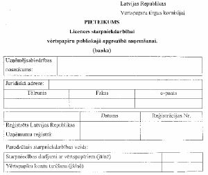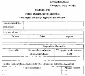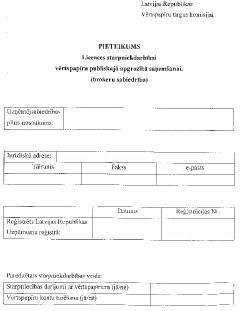 Pielikumu veidlapas elektroniskā veidā var saņemt Vērtspapīru tirgus komisijā.