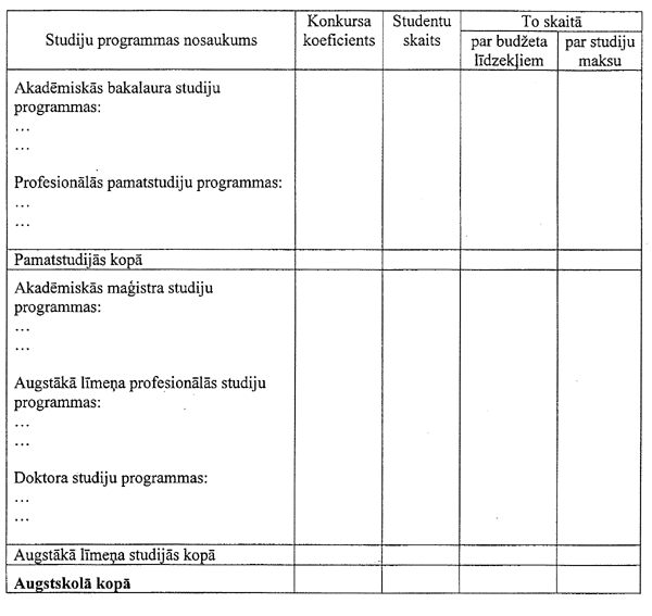 2.1. informāciju par augstskolas struktūru, uzņemto studentu skaitu un sastāvu, studējošo skaitu un sastāvu (1.pielikums) un studiju iespējām (2.pielikuma I sadaļa) - līdz pārskata gada 5.septembrim;