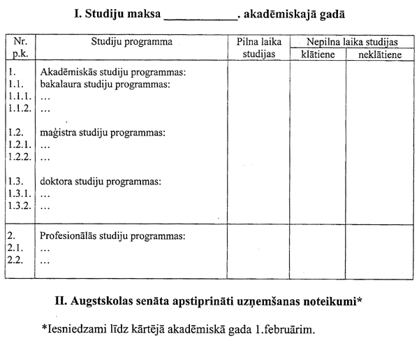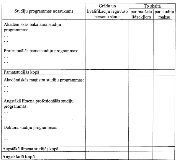 II. Studējošie, kuri _____. akadēmiskajā gadā ir ieguvuši akadēmisko, profesionālo vai zinātnisko grādu vai profesionālo kvalifikāciju
