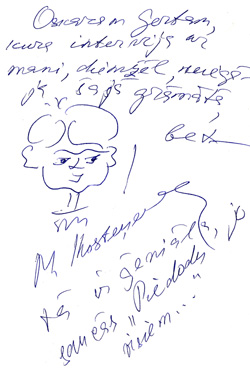 Tautas deputātu kluba "Neatkarība" valdes priekšsēdētājas, visu patriotisko Latvijas deputātu un materiālu "kopā savācējas", rakstnieces Marinas Kosteņeckas autogrāfs "Latvijas Vēstneša" galvenajam redaktoram, tolaik — PSRS Tautas deputātu kongresos akreditētajam speciālkorespondentam, Oskaram Gertam |