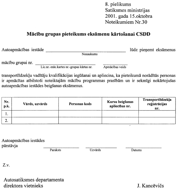 31.1. pieteikumu eksāmenu kārtošanai (8.pielikums);