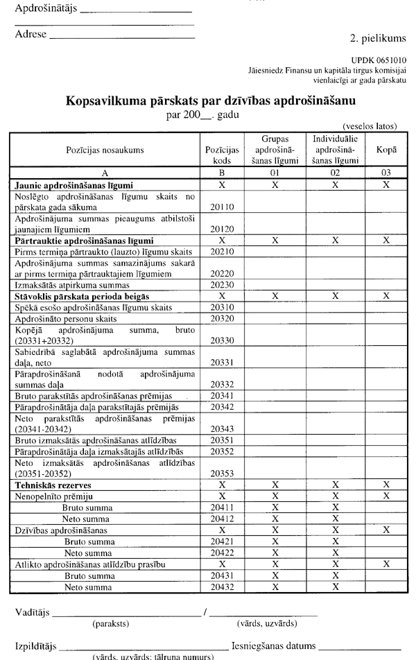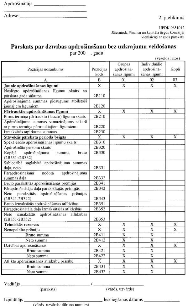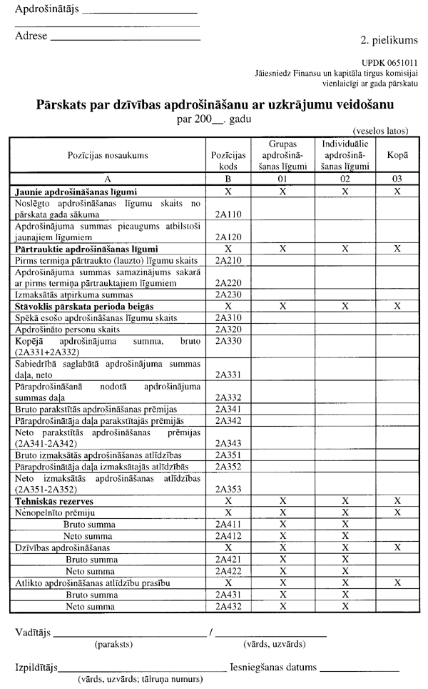 3.1.1.1. “Pārskata par dzīvības apdrošināšanu ar uzkrājumu veidošanu” (UPDK 0651011 veidlapa; 2. pielikuma 2. lapa);