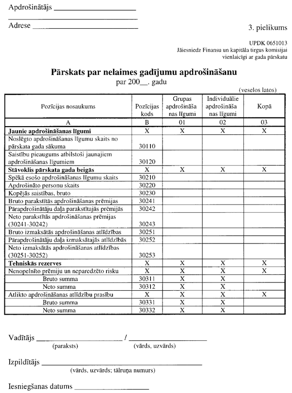 3.1.2. “Pārskata par nelaimes gadījumu apdrošināšanu” (UPDK 0651013 veidlapa; 3. pielikums);