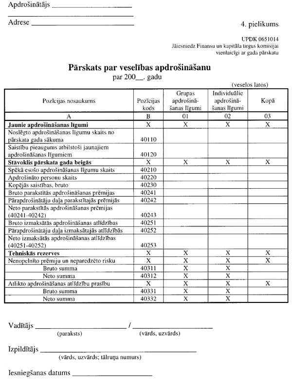 3.1.3. “Pārskata par veselības apdrošināšanu” (UPDK 0651014 veidlapa; 4. pielikums);