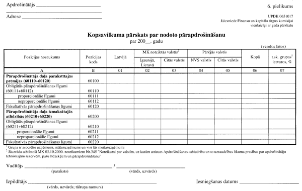 3.3. “Kopsavilkuma pārskata par nodoto pārapdrošināšanu” (UPDK 0651017 veidlapa; 6. pielikuma 1. lapa);