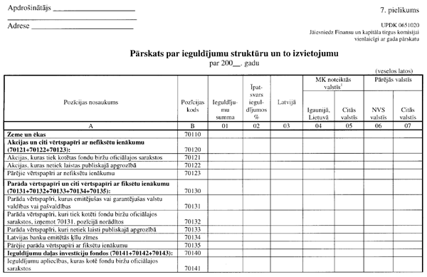 3.4. “Pārskata par ieguldījumu struktūru un to izvietojumu” (UPDK 0651020 veidlapa; 7. pielikuma 1. lapa);