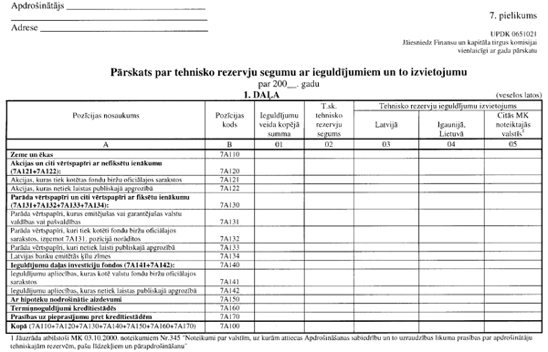 3.4.1. “Pārskata par tehnisko rezervju segumu ar ieguldījumiem un to izvietojumu” (UPDK 0651021 veidlapa; 7. pielikuma 2. lapa);