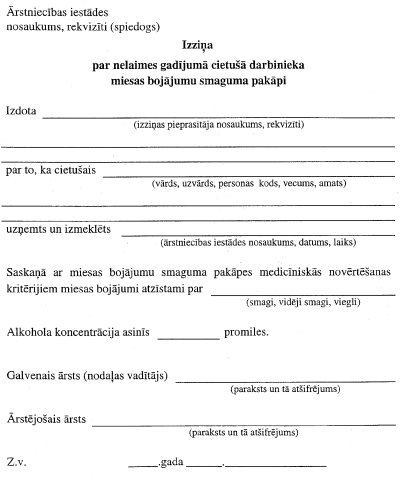 28.8. ārstniecības iestādes izziņa par darbinieka veselības stāvokli pirms nelaimes gadījuma;