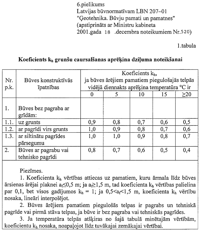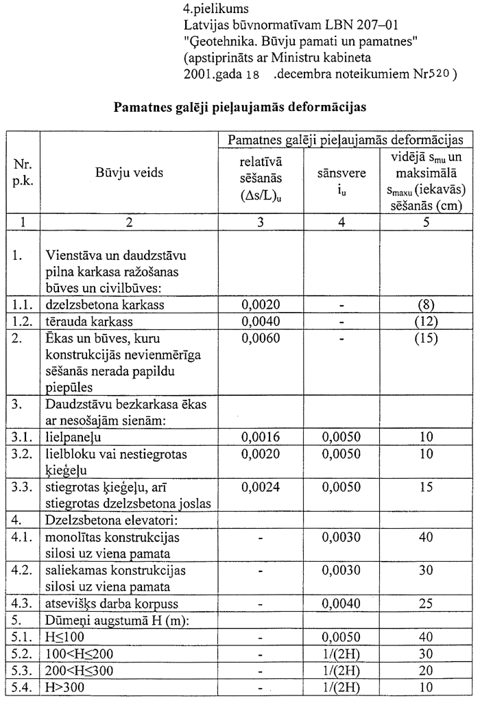 Latvijas būvnormatīvs LBN 207-01 “Ģeotehnika. Būvju pamati un pamatnes” |
