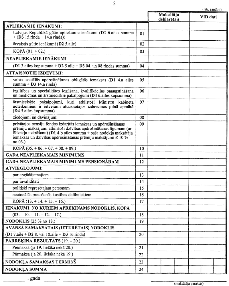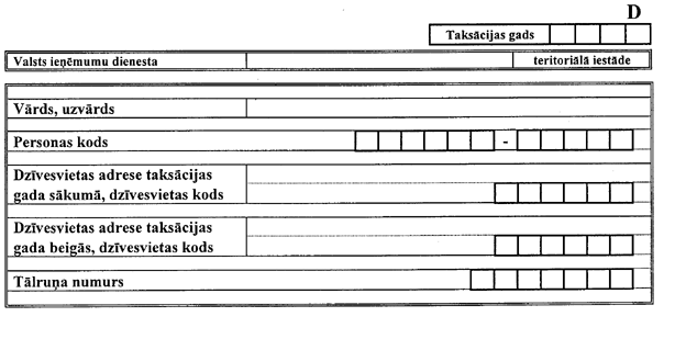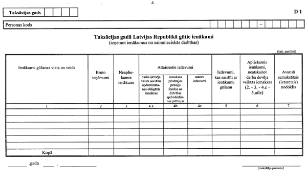 2. Izteikt D1 veidlapu šādā redakcijā: