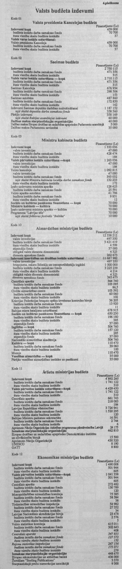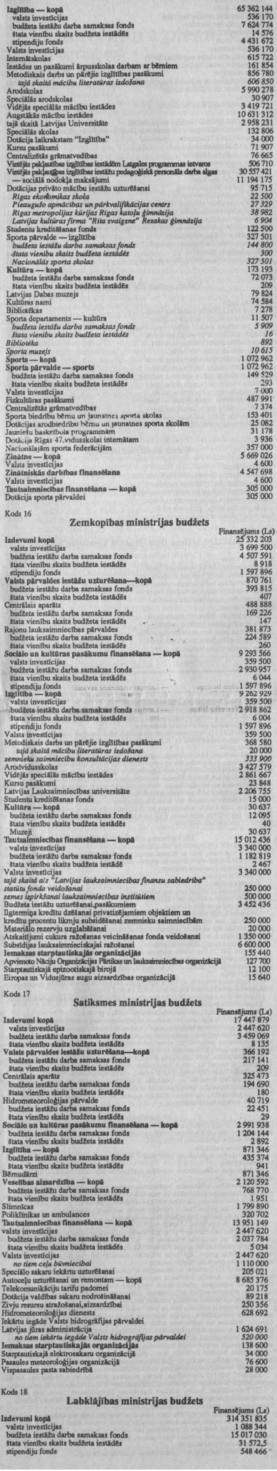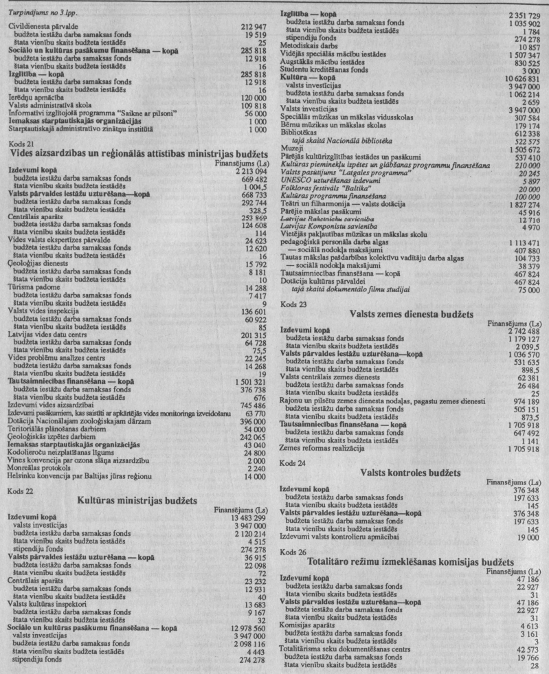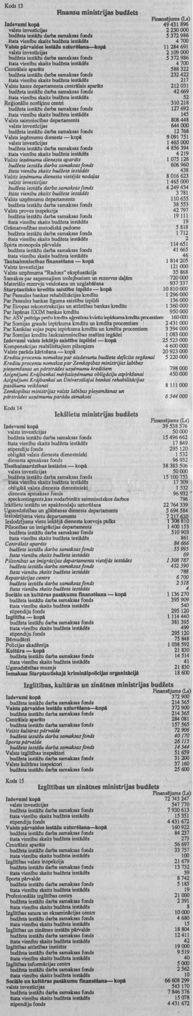 «9. pants. Apstiprināt valsts budžetu 1994. gadam izdevumos 640 452 075 lati.»