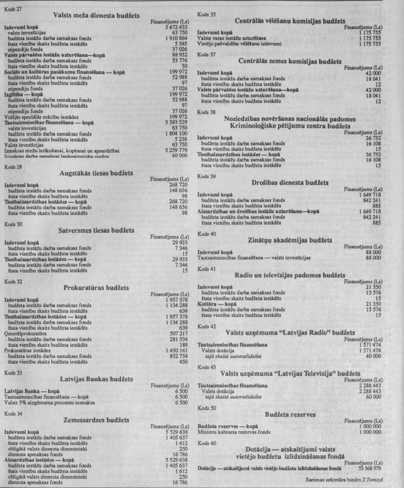 Izdarīt likumā «Par valsts budžetu 1994. gadam» (Latvijas Republikas Saeimas un Ministru Kabineta Ziņotājs, 1994, 5) šādus grozījumus: