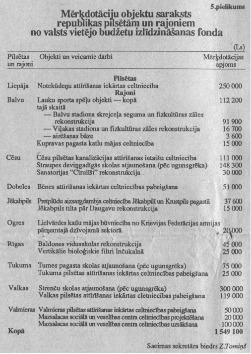 | Rīgas pilsētas budžeta | 2 096 000 |