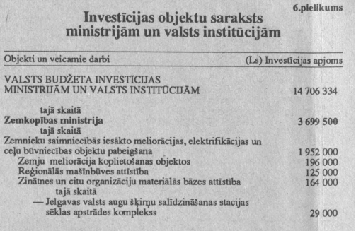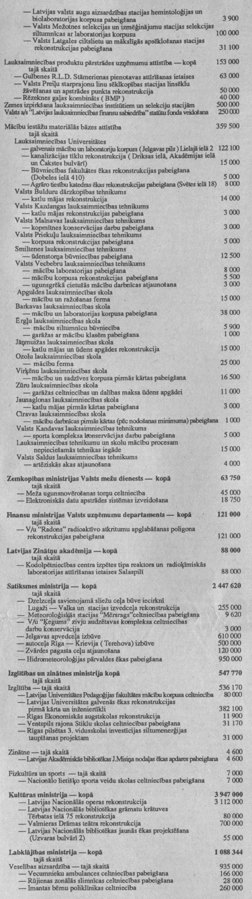 | Zemkopības ministrijas iemaksas valsts labības pieņemšanas un pārstrādes uzņēmumiem izsniegtā kredīta nomaksai | 6 344 000 |
