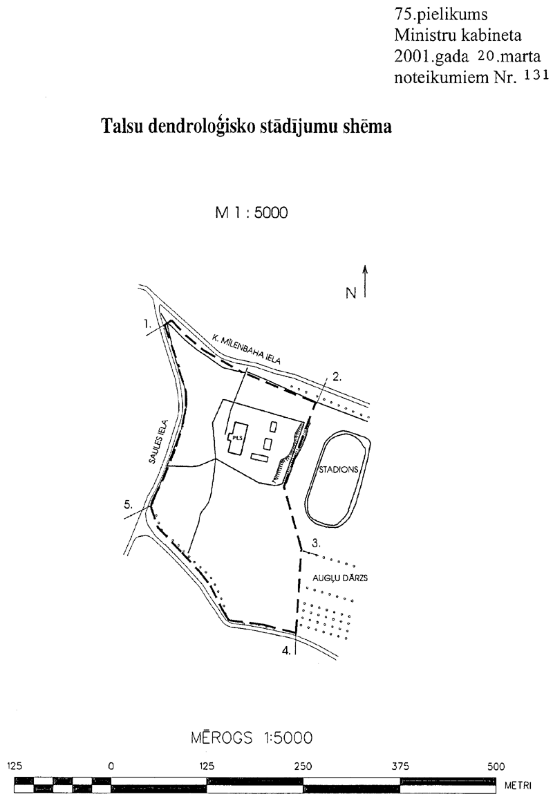 | 75. | Talsu dendroloģiskie stādījumi | Talsu rajons | Talsi | 75.pielikums |